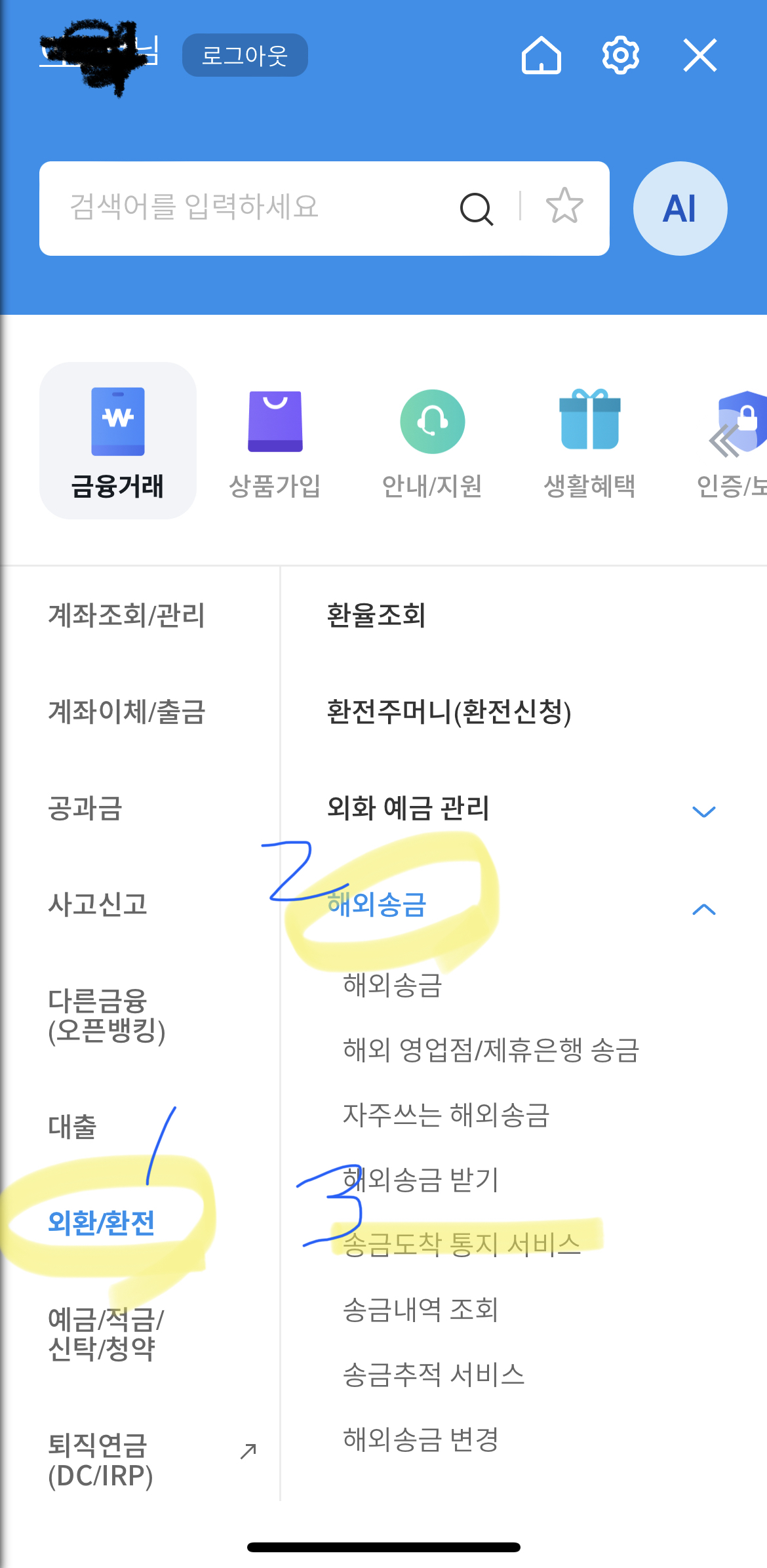 우리은행 어플 메뉴에 들어가시면 ‘외화/환전 - 해외송금 - 송금도착 통지 서비스’가 있습니다.