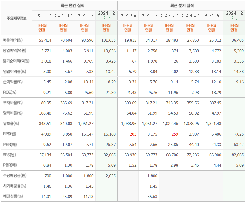 * 2024.12(E) : 2024.10~12 간의 증권사에서 발표현 전망치의 평균값